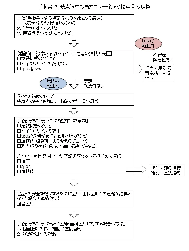 持続点滴中の高カロリー輸液の投与量の調整